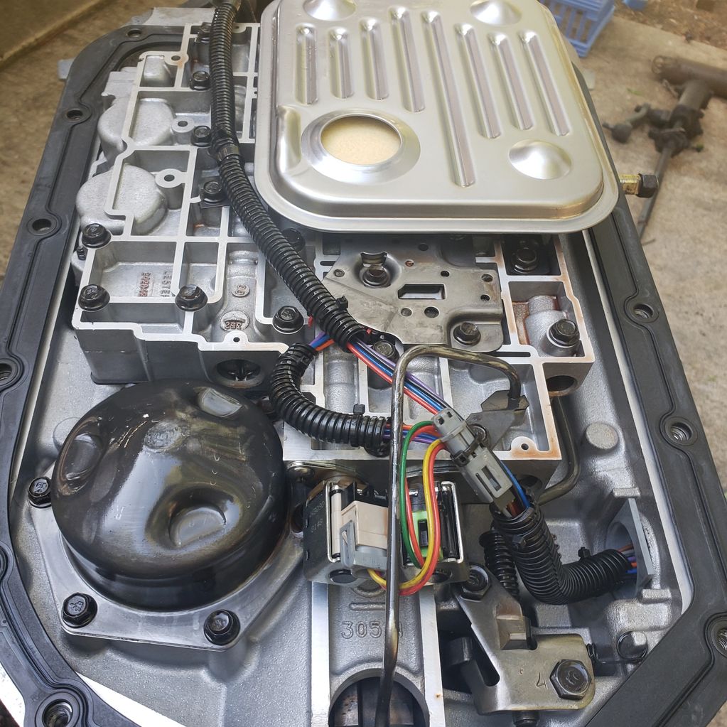 Replaced transmission filter, pan gasket, and internal wiring harness